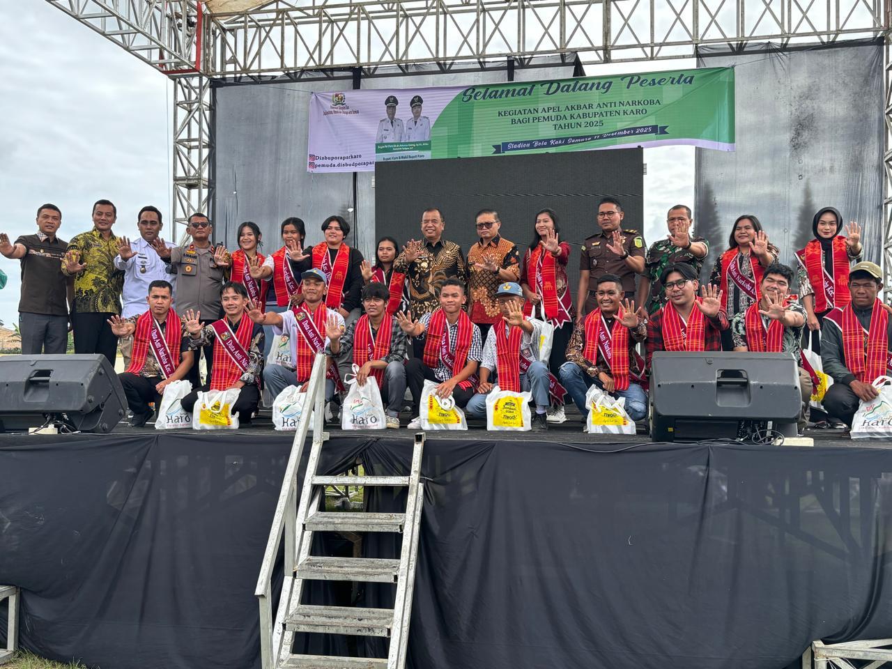 Kegiatan dimulai pukul 09.00 WIB dan turut dihadiri oleh unsur Forkopimda Karo, antara lain Bupati Karo Brigjen Pol (Purn) Dr. dr. Antonius Ginting, Sp.OG., M.Kes, Wakapolres Tanah Karo Kompol Gering Damanik, S.H. yang hadir mewakili Kapolres, serta Kepala BNNK Karo Ardi Efendi Saragi, S.E.. Jajaran OPD, camat, tokoh agama, perwakilan sekolah Madrasah dan Sanawiyah, hingga ratusan pelajar SMP dan SMA memenuhi area stadion.