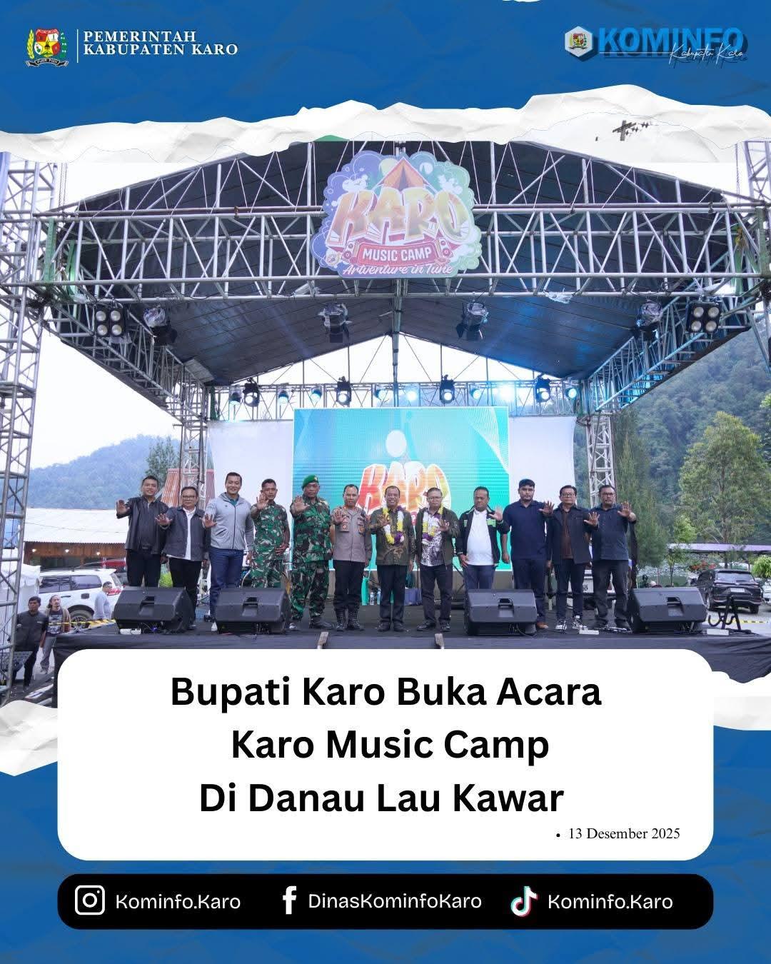 Bupati Karo Brigjen Pol (Purn) Dr. dr. Antonius Ginting, Sp.OG., M.Kes., membuka resmi Event Wisata Karo Music Camp Tahun 2025 di Camping Ground Laukawar, Kecamatan Naman Teran, Kabupaten Karo, Sabtu (13/12/2025).