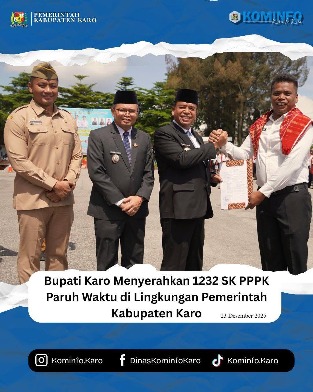 Bupati Karo, Brigjen Pol (Purn) Dr. dr. Antonius Ginting, Sp.OG., M.Kes., Menyerahkan 1232 SK PPPK Paruh Waktu di Lingkungan Pemerintah Kabupaten Karo di Halaman Kantor Bupati, pada Selasa (23/12/2025)