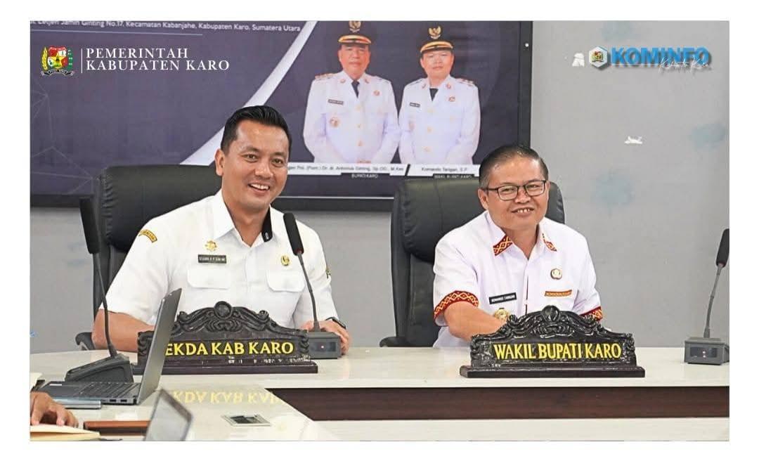 Bupati Karo, Brigjen Pol (Purn) Dr. dr. Antonius Ginting, Sp.OG., M.Kes., Wakil Bupati Karo, Komando Tarigan, SP., dan Sekretaris Daerah Kabupaten Karo, Gelora Kurnia Putra Ginting, S.STP., MM., bersama OPD terkait dan APINDO mengikuti rapat pembahasan hilirisasi jeruk dengan pemanfaatan teknologi Smart Cold Storage System yang dilaksanakan secara Zoom Meeting bersama MFA INSIGHTS Singapore, bertempat di Ruang KCC Kantor Bupati Karo, Rabu (28/01/2026).