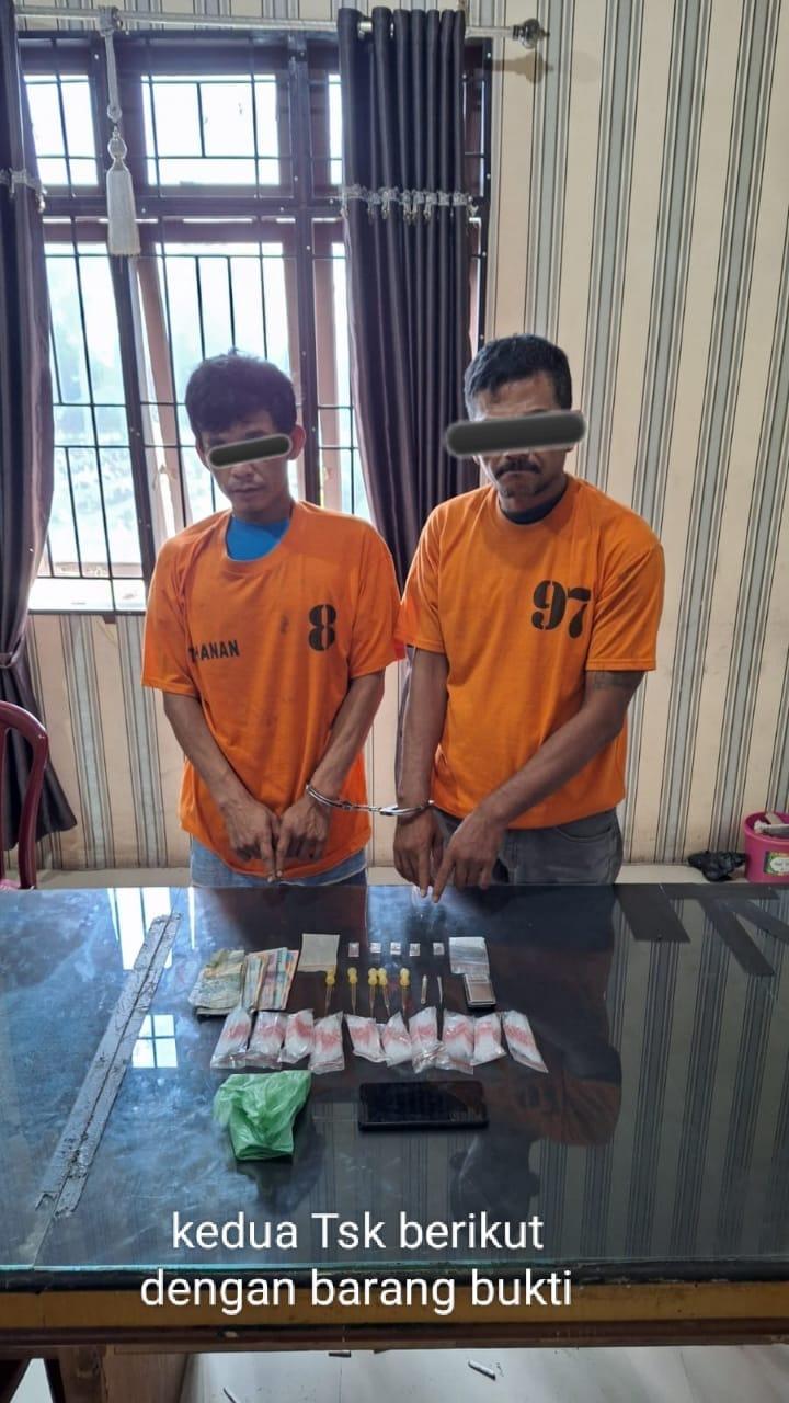 “Personel Satresnarkoba segera melakukan penyelidikan dan berhasil mengamankan dua orang pria berikut barang bukti narkotika,” ujarnya, Sabtu(13/9) pagi di Mapolres.