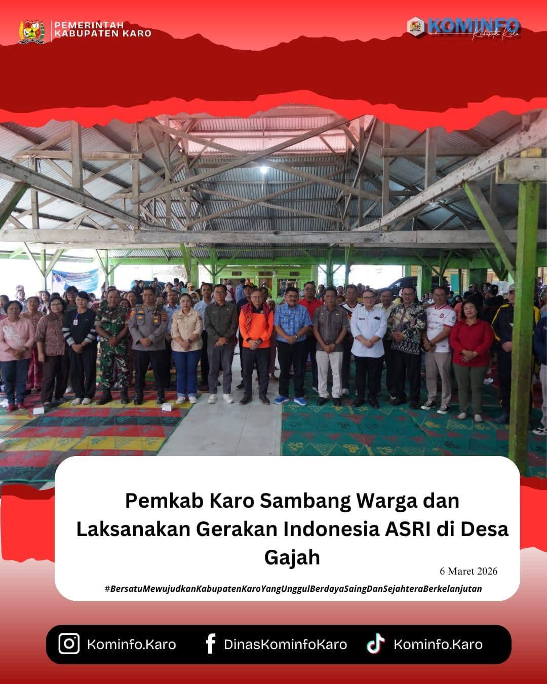 Bupati Karo, Brigjen Pol (Purn) Dr. dr. Antonius Ginting, Sp.OG., M.Kes., di wakili Wakil Bupati Karo, Komando Tarigan, S.P, melaksanakan kegiatan Sambang Warga sekaligus Gerakan Indonesia ASRI (Aman, Sehat, Resik, dan Indah) di Losd Desa Gajah, Kecamatan Simpang Empat, Jumat (06/03/2026).