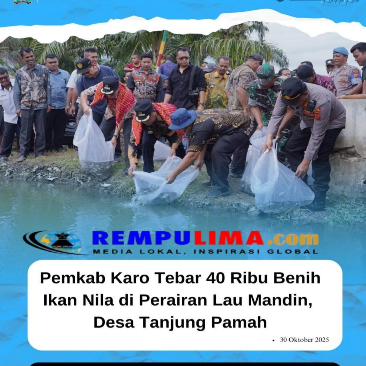 Pemerintah Kabupaten Karo melalui Dinas Ketahanan Pangan dan Perikanan melaksanakan kegiatan Restocking atau Penebaran Benih Ikan Nila di Perairan Umum Lau Mandin, Desa Tanjung Pamah, Kecamatan Mardingding, Kamis (30/10/2025) yang dilakukan secara resmi pembukaanya oleh Bupati Karo, Antonius Ginting.