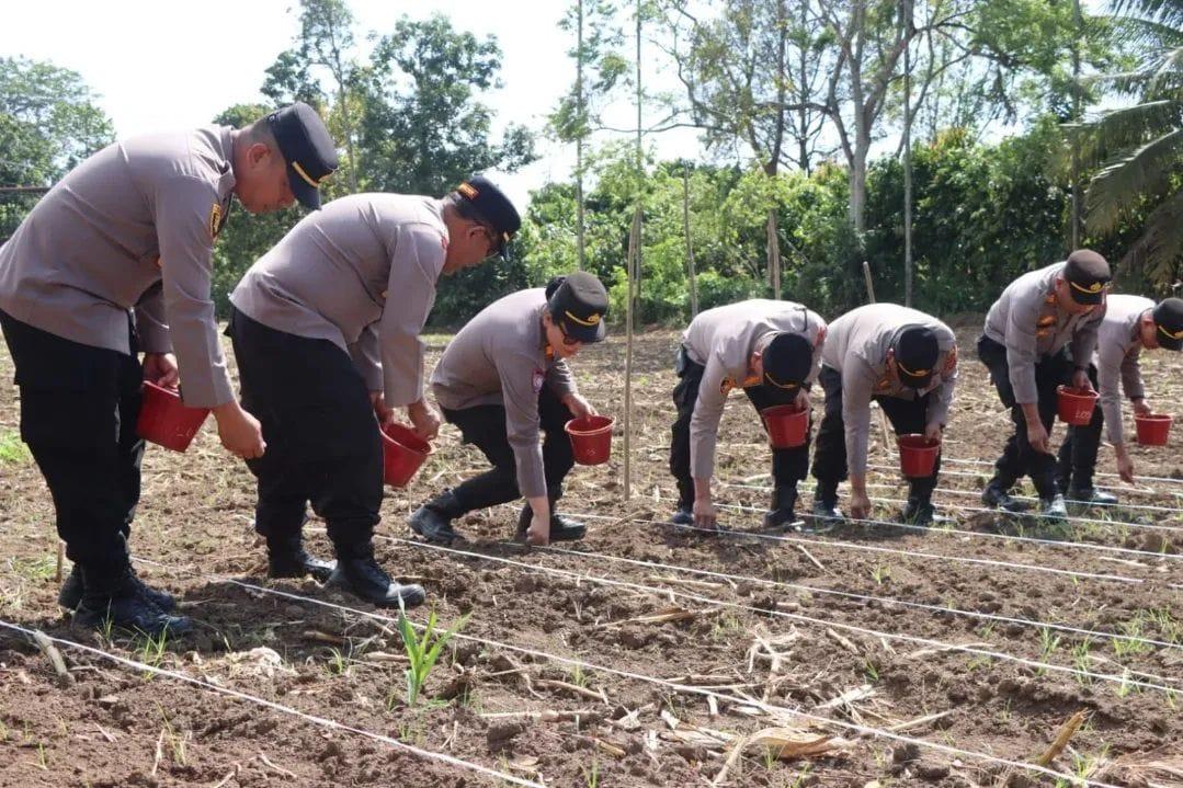 Kegiatan tersebut merupakan bagian dari dukungan Polri terhadap program ketahanan pangan nasional melalui pemanfaatan lahan produktif bersama pemerintah daerah dan masyarakat.