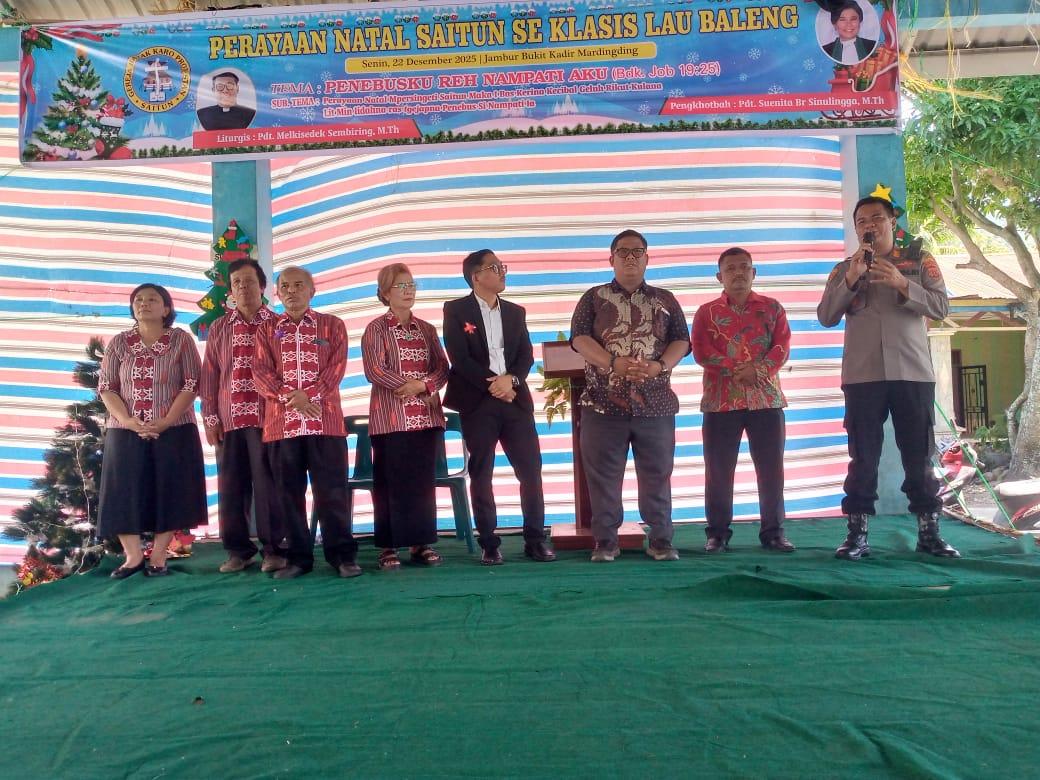 Polsek Mardingding melaksanakan pengamanan kegiatan Perayaan Natal SAITUN se-Klasis Lau Baleng Tahun 2025 yang berlangsung khidmat dan penuh sukacita di Jambur Bukit Kadir, Desa Mardingding, Kecamatan Mardingding, Kabupaten Karo, Senin(22/12/2025).