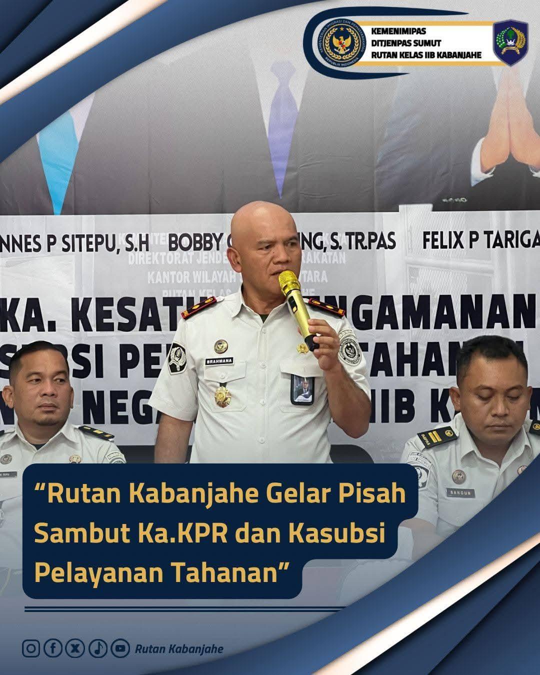 Rutan Kelas IIB Kabanjahe menggelar kegiatan pisah sambut Kepala Kesatuan Pengamanan Rutan (Ka.KPR) serta Kepala Sub Seksi Pelayanan Tahanan sebagai bentuk apresiasi atas pengabdian pejabat lama sekaligus penyambutan pejabat baru. Kegiatan berlangsung khidmat dan penuh keakraban di lingkungan Rutan Kabanjahe, Selasa (13/01/2026)
