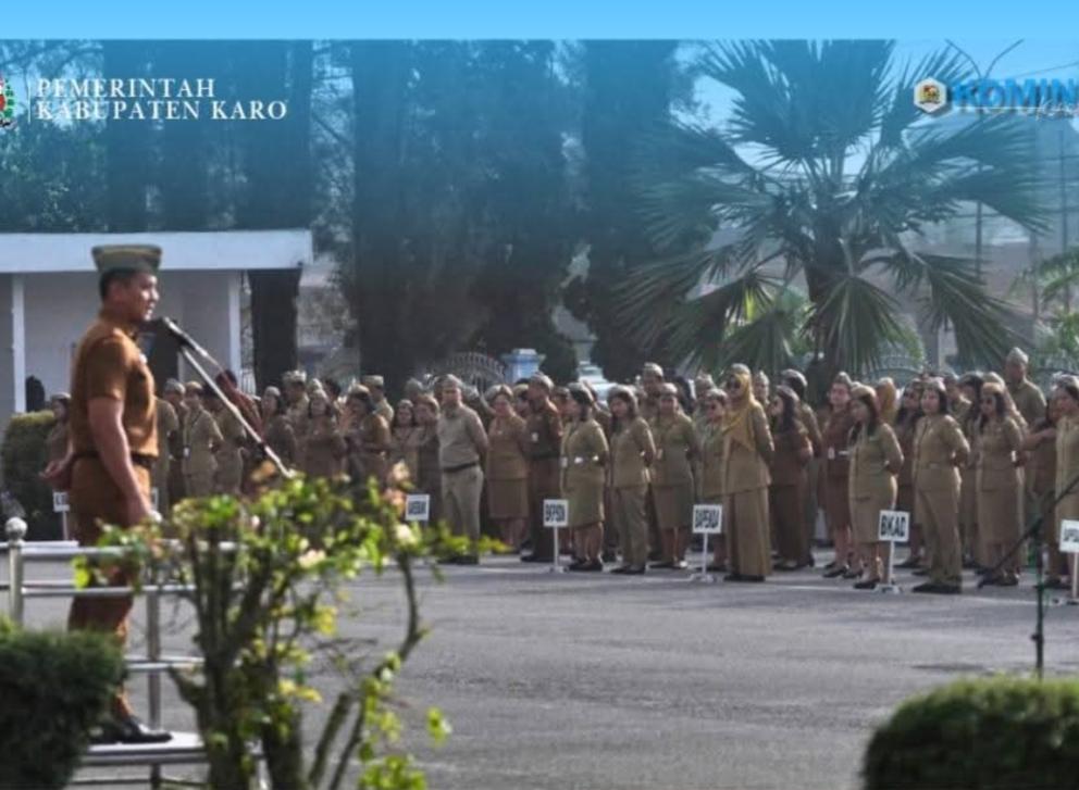 Sekretaris Daerah (Sekda) Kabupaten Karo, Gelora Kurnia Putra Ginting, S.STP., M.M., memimpin Apel Gabungan Aparatur Sipil Negara (ASN) di lingkungan Pemerintah Kabupaten (Pemkab) Karo yang dilaksanakan di Halaman Kantor Bupati Karo, Senin (22/9/2025)