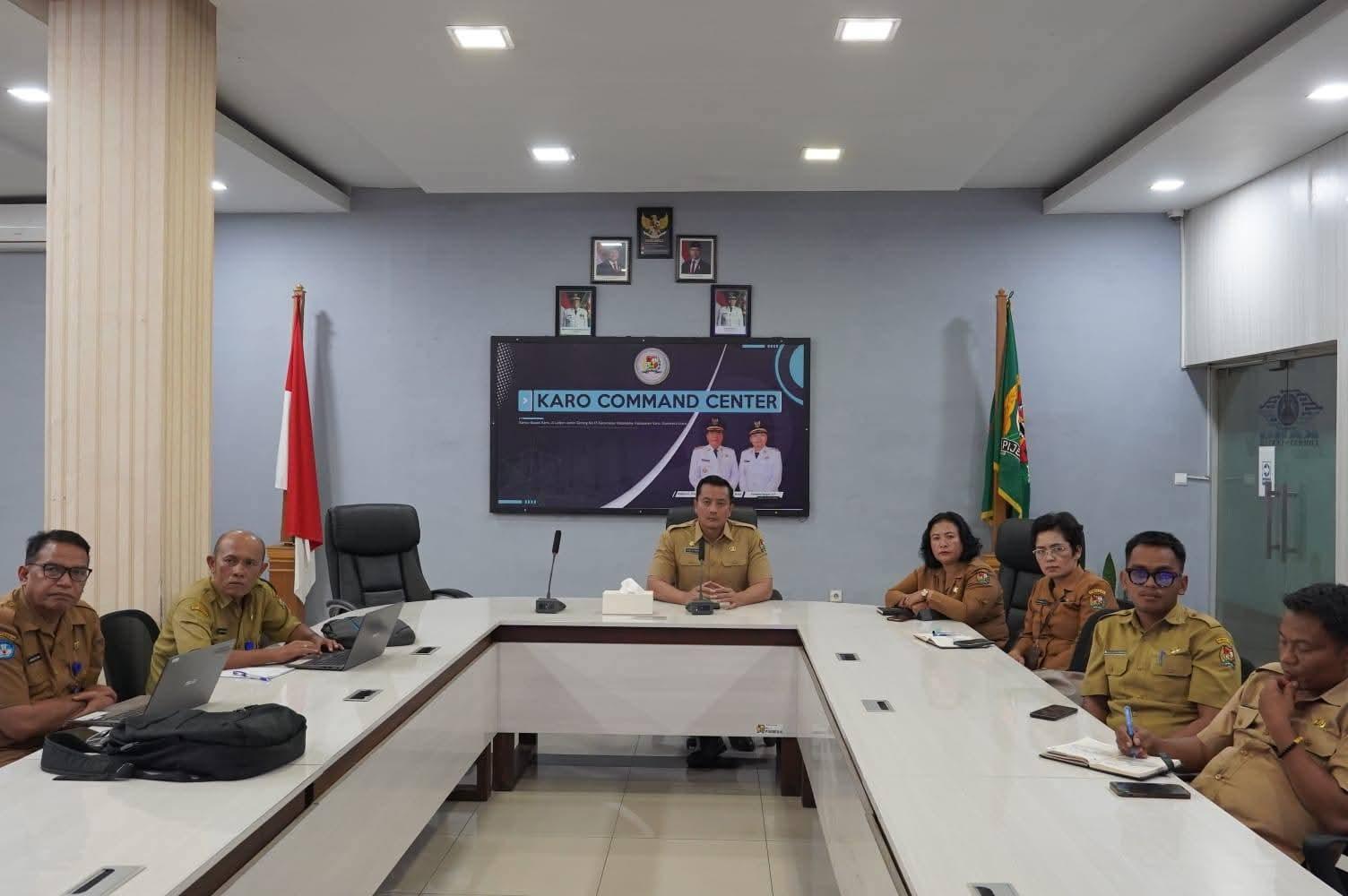 Sekretaris Daerah Kabupaten Karo, Gelora Kurnia Putra, S.STP., M.M., mengikuti kegiatan Webinar Sosialisasi dan Diskusi Peraturan Menteri Pendidikan Dasar dan Menengah (Permendikdasmen) Nomor 6 Tahun 2026 tentang Budaya Sekolah Aman dan Nyaman, secara daring dari Ruangan Karo Command Center, Kantor Bupati Karo, Senin (2/3/2026).