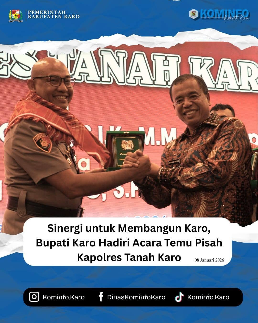 Kepada Kapolres Karo yang baru, AKBP Pebriandi Haloho, SH, S.I.K, M.Si., Bupati menyampaikan selamat datang dan menyatakan kesiapan Pemerintah Kabupaten Karo untuk bersinergi. Beliau menekankan bahwa Polri adalah mitra strategis pemerintah dalam mewujudkan kesejahteraan masyarakat.
