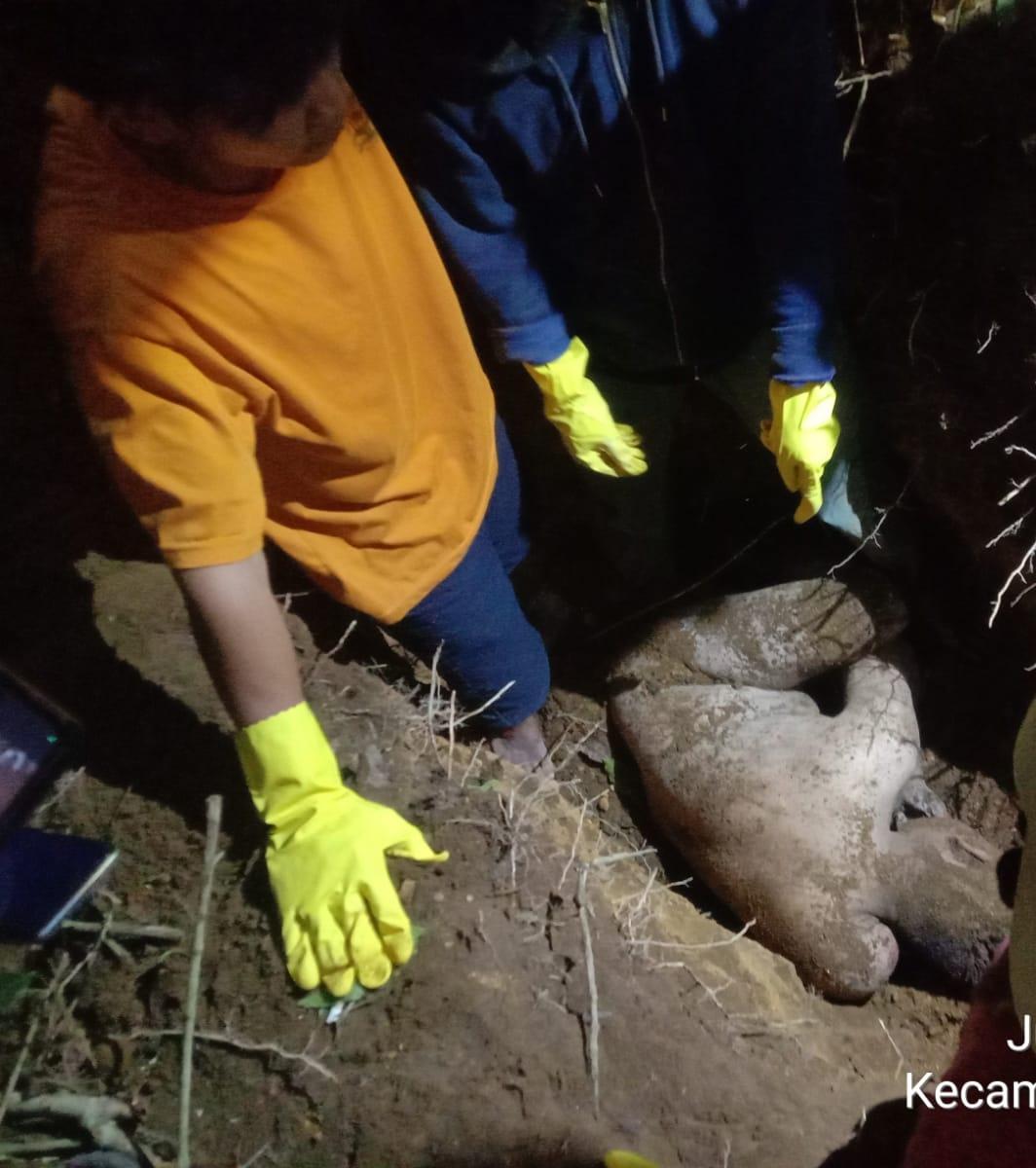 Yang selanjutnya pukul 21.25 wib tim inafis mendatangi TKP kemudian melakukan penggalian dihadapan pihak kepolisian, Babinsa